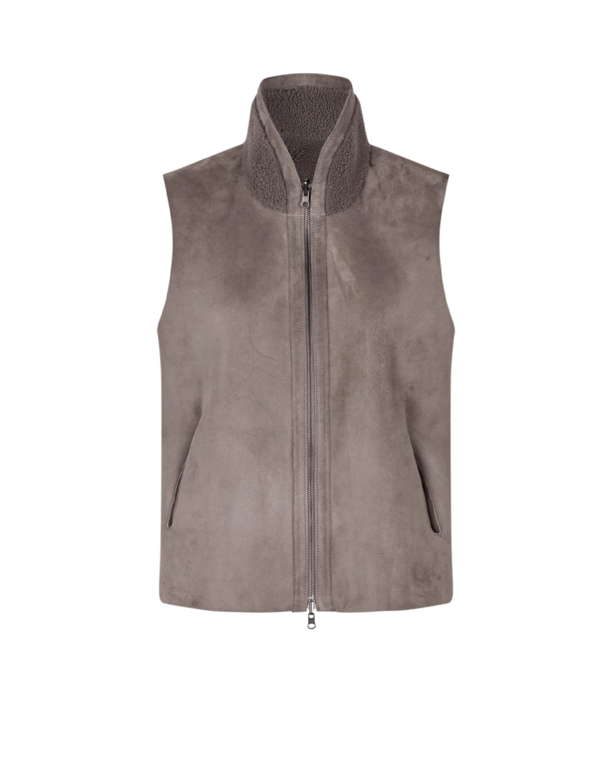Elegante Inge-vest i rulam holder dig varm gennem forår og efterår – og kan også bruges om vinteren over en cashmerebluse. Modellen er vendbar, så du får to udtryk i én vest