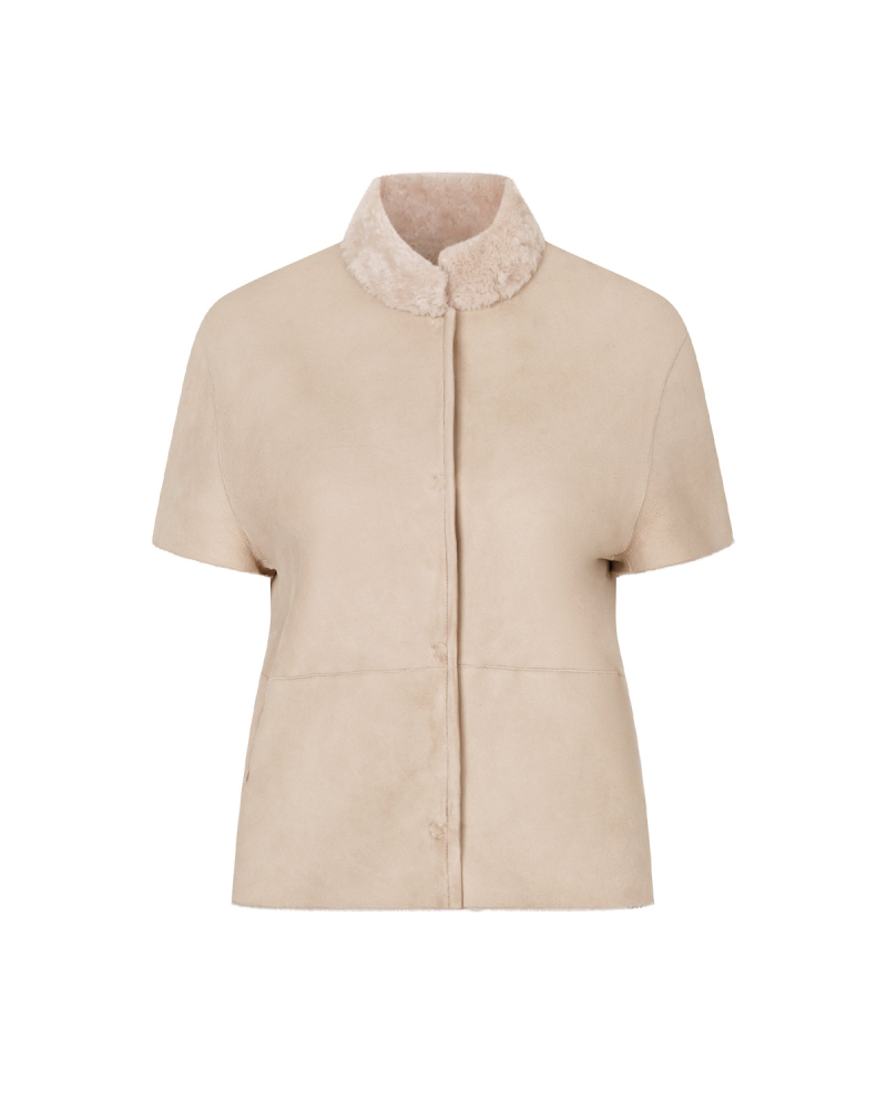 Materiale: 100% rulam Farve: Creme Pasform: Tætsiddende silhuet Bemærk: Hvis ruskindssiden vendes indad, kan modellen føles mere rummelig Pleje: Rens anbefales hos specialist