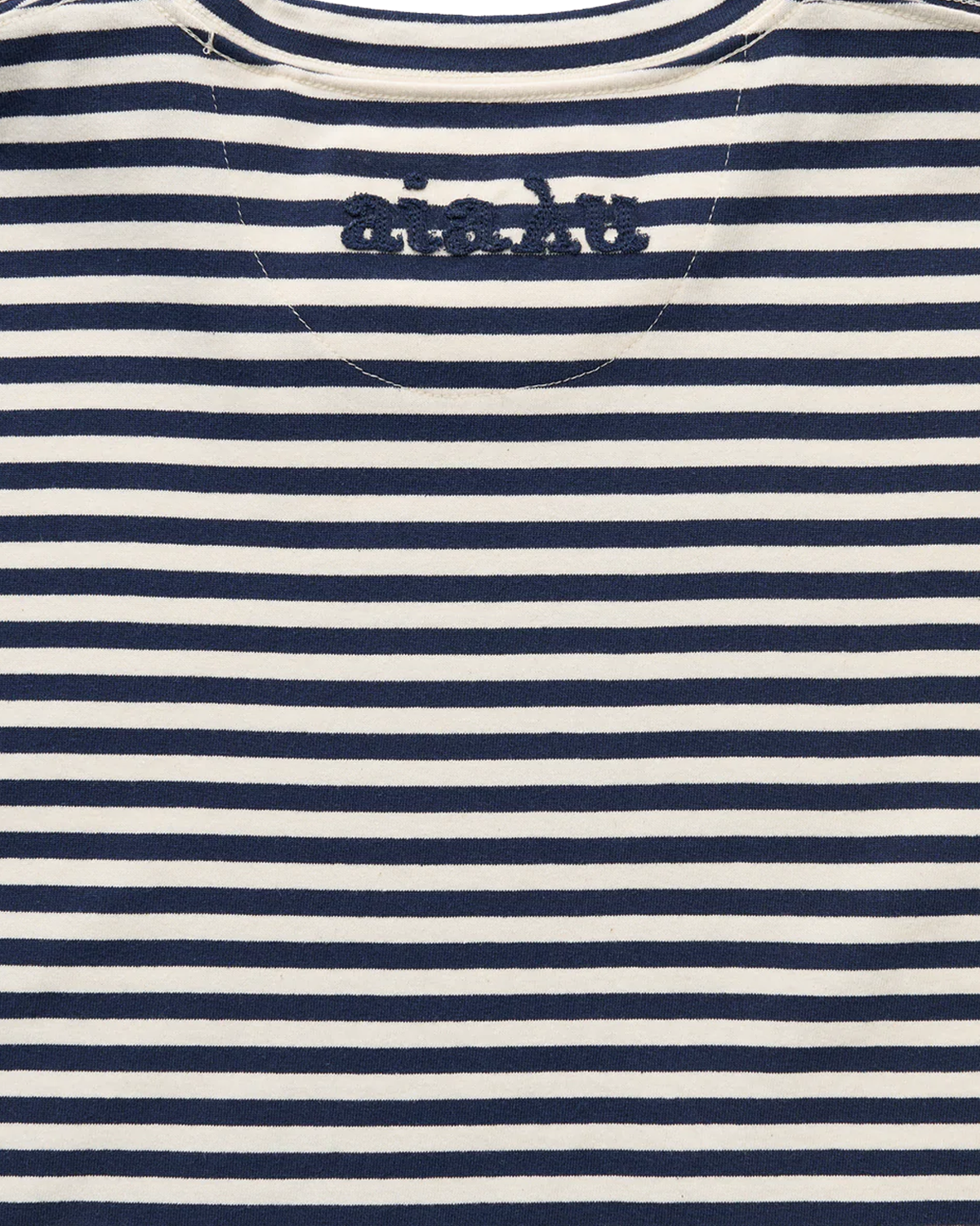 En klassisk T-shirt fremstillet i en kraftig og blød jersey af genanvendt og økologisk bomuld. Designet med inspiration fra traditionelle menswear-T-shirts i en let oversized, regulær pasform med rund hals, korte ærmer og et diskret, broderet aiayu-logo bagpå.