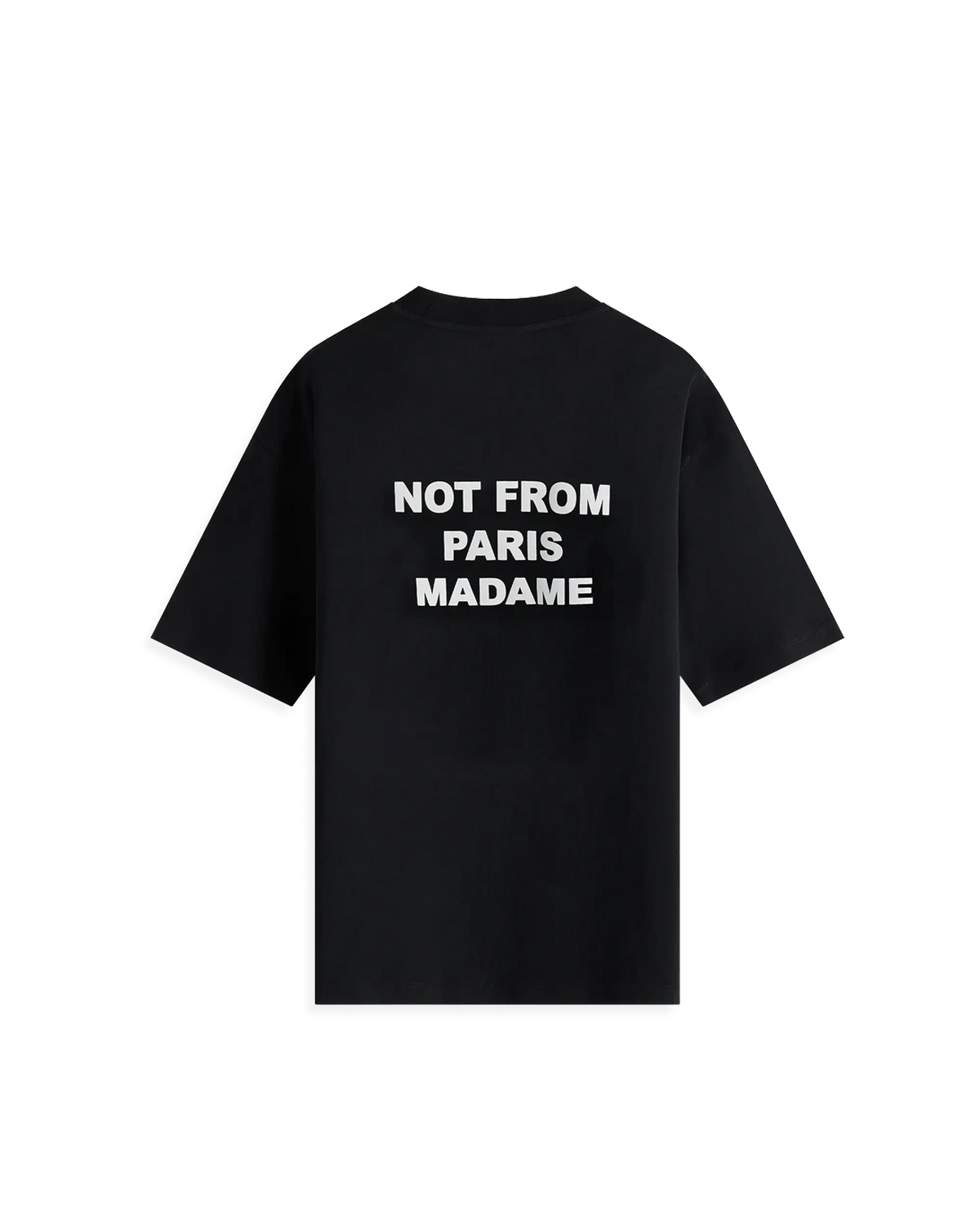 Fremstillet i 100 % bomuld. Den har sloganet “Not from Paris Madame” printet både foran og bagpå.