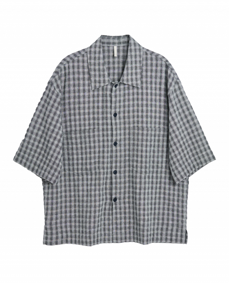 Kortærmet oversize skjorte i en italiensk metervare blanding af bomuld og hør, med 2 brystlommer og perlemors knapper.