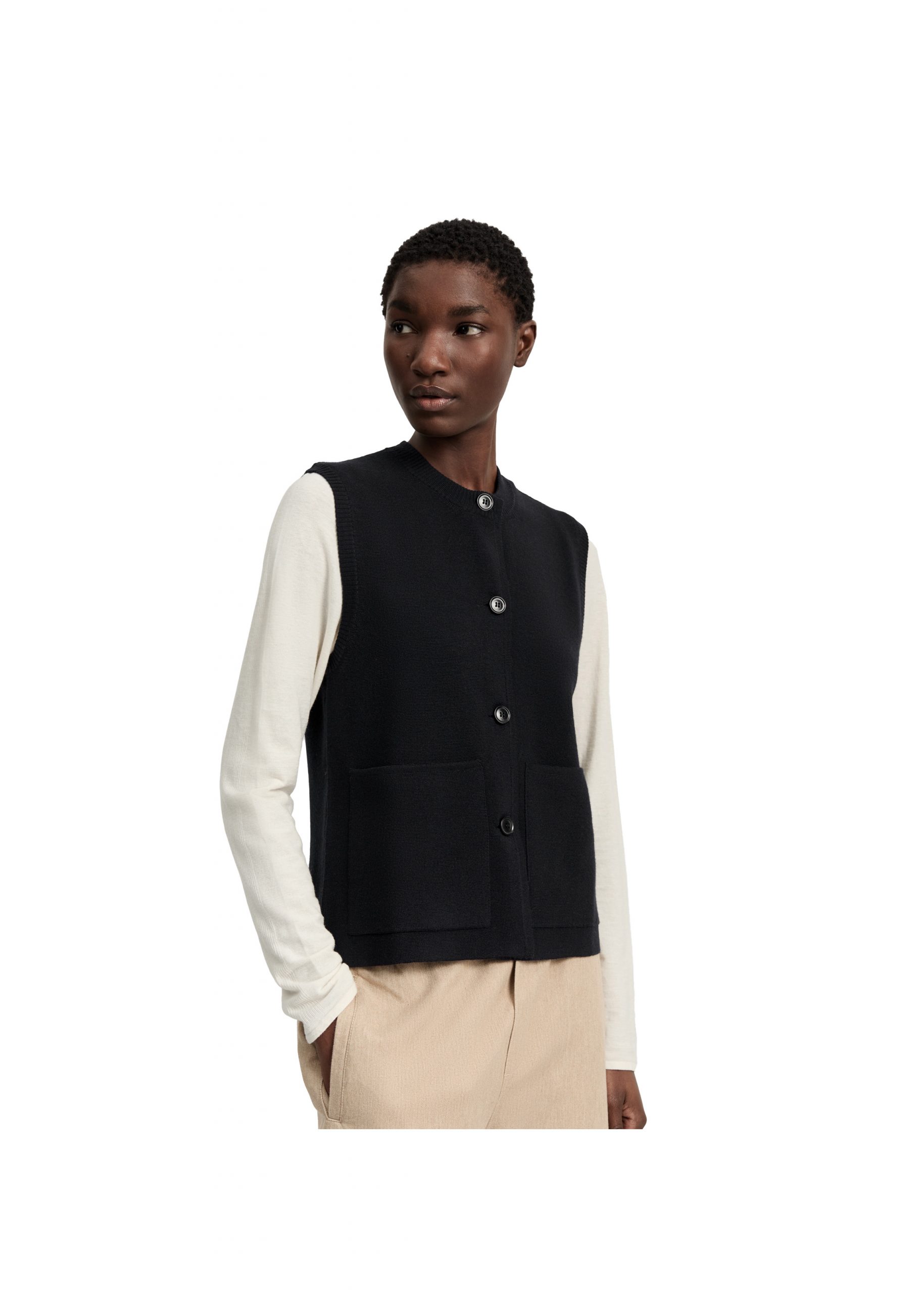 En raffineret vest fremstillet af fin mulesingfri merinould fra danske Aiayu.