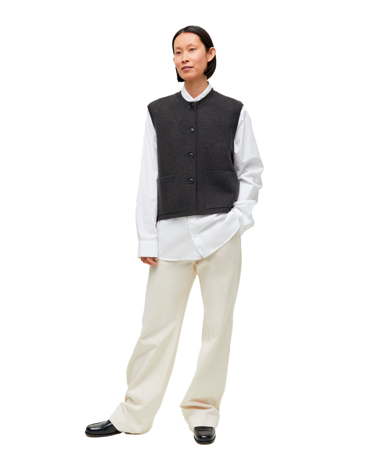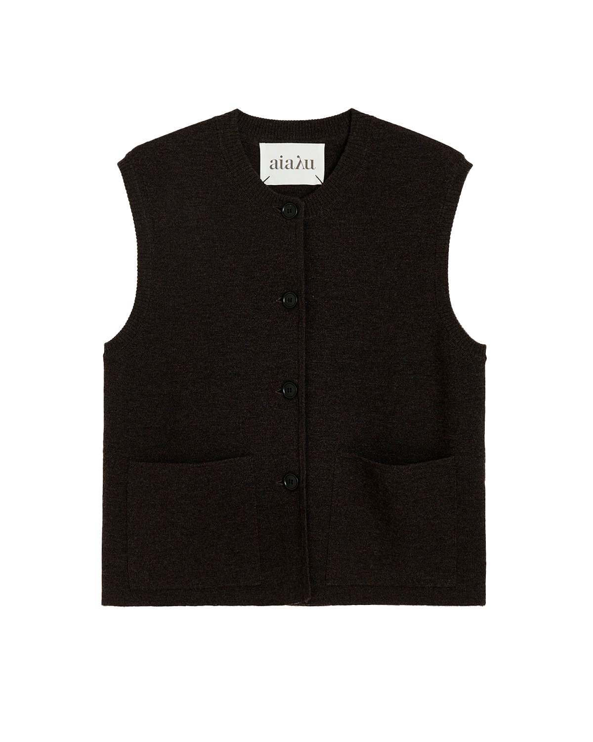 En raffineret vest fremstillet af fin mulesingfri merinould fra danske Aiayu.